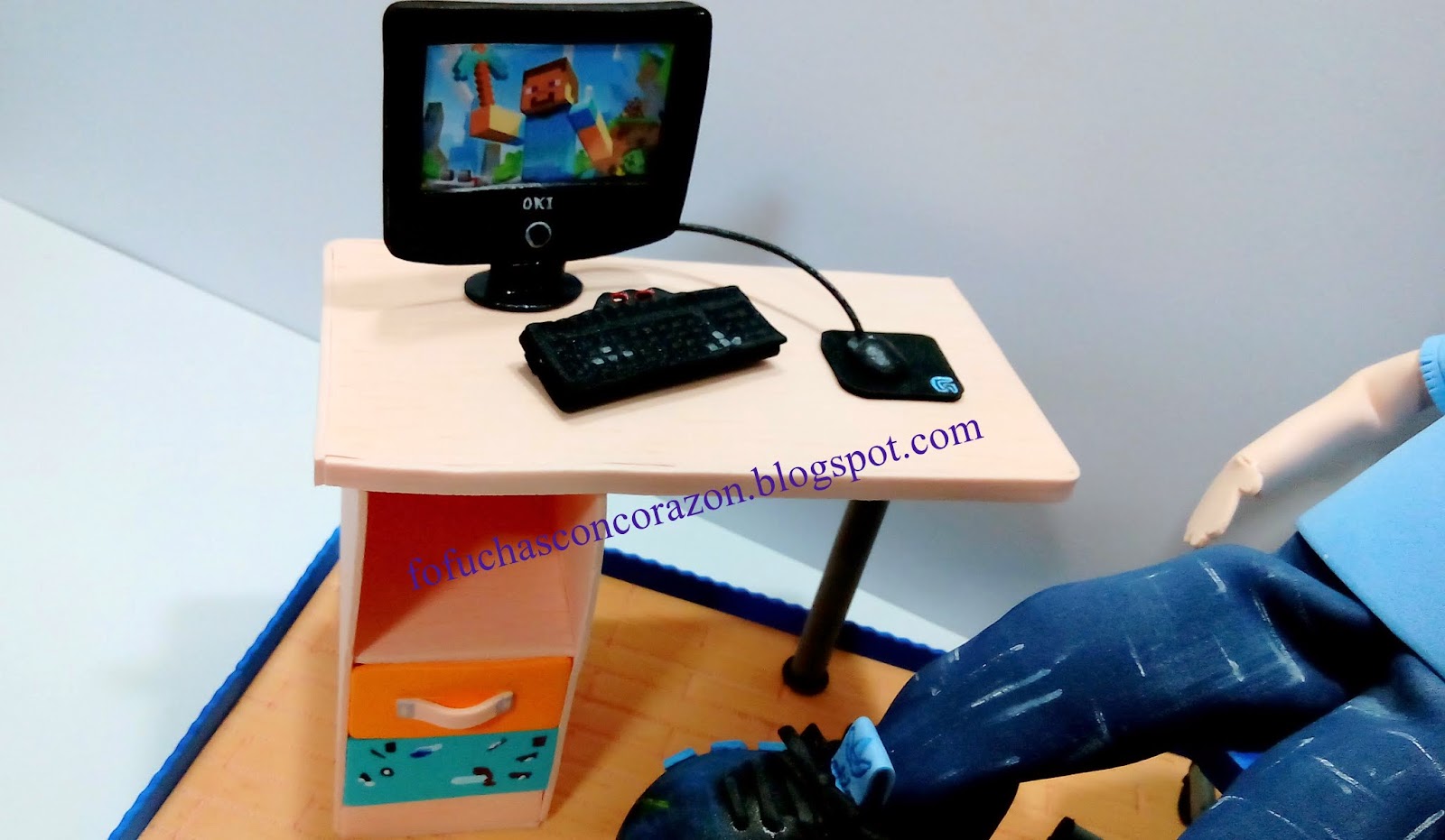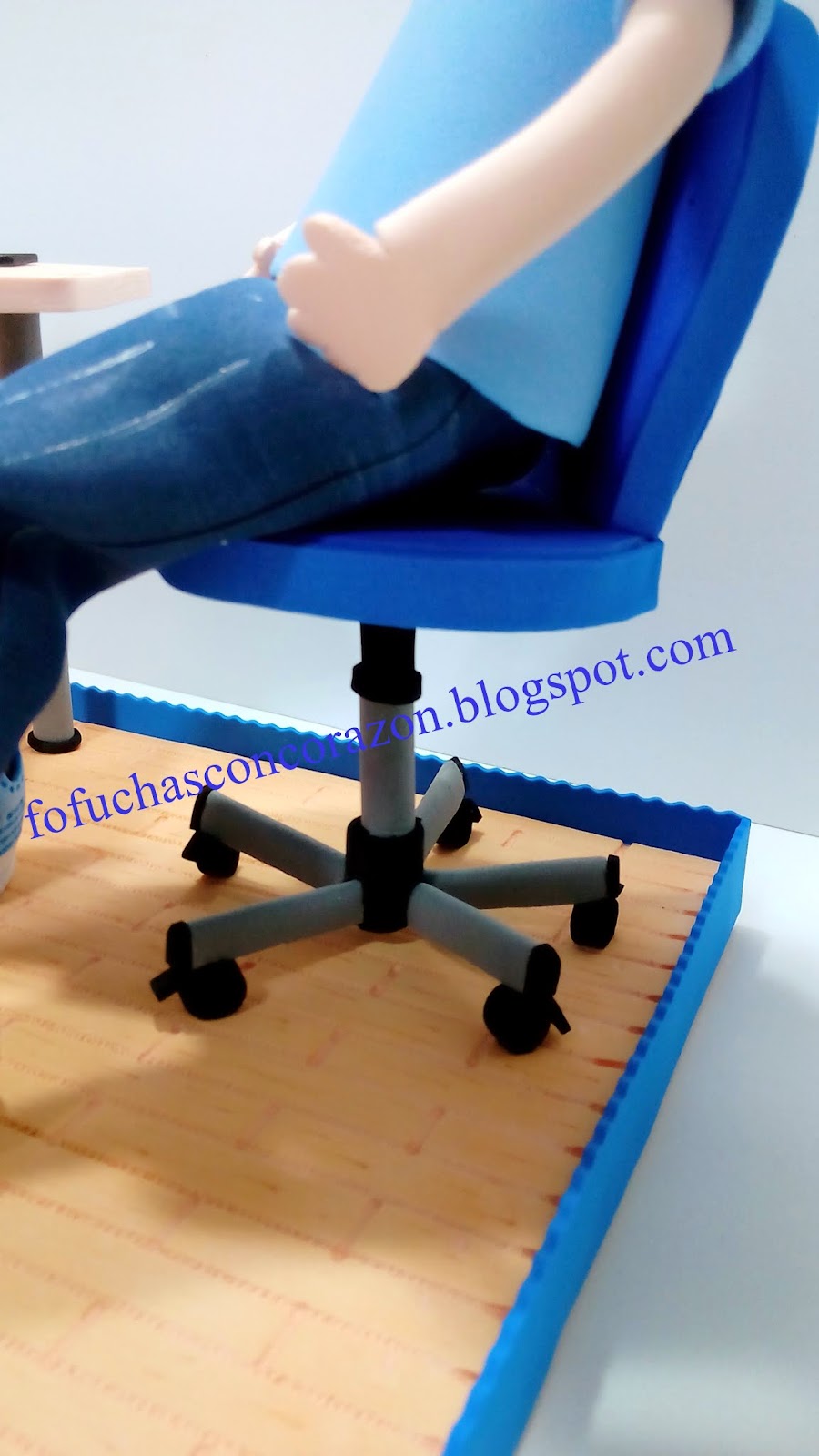 Y dicho esto, aquí podéis ver este bonito trabajo, se trata de un fofucho sentado en su escritorio personalizado, con sus cascos de música también personalizados.