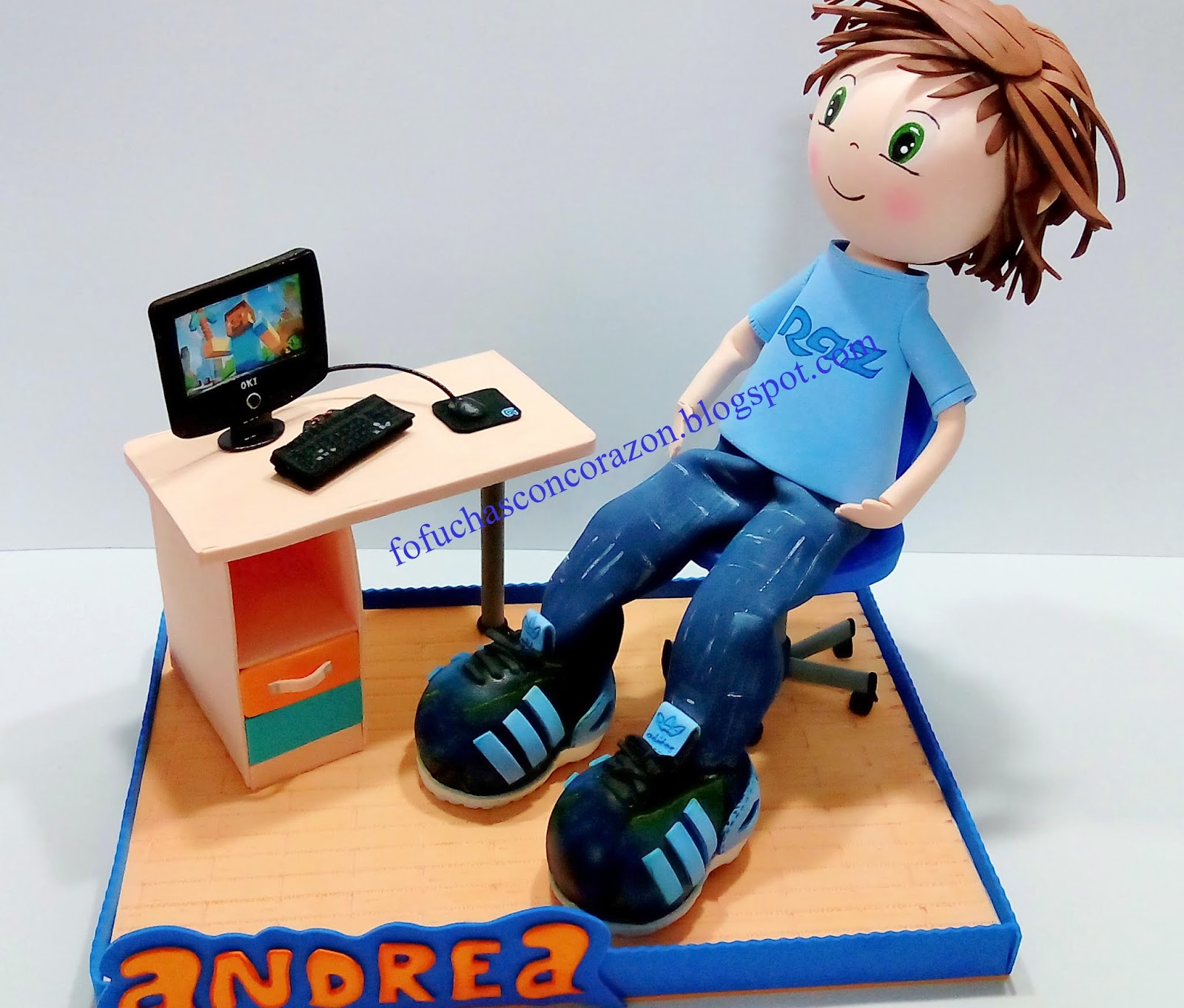 Es un regalo que le hace su familia a Andrea, un chico guapo como nuestro fofucho, por su 14 cumpleaños. Su madre, Naty, nos hizo llegar fotos ( ropa, deportivas, mesa y silla de escritorio...) para personalizarlo y que pudiera verse reflejado.