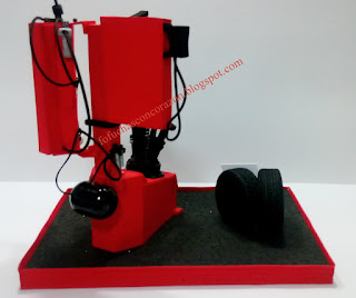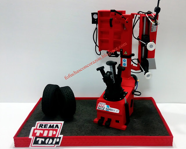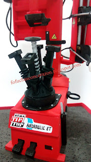 ...los profesionales del sector saben de que se trata pero para los profanos en la materia os diremos que se trata de una réplica en goma eva de una desmontadora de neumáticos, más concretamente de una Airdaulic ET que comercializa Rema Tip Top Ibérica.