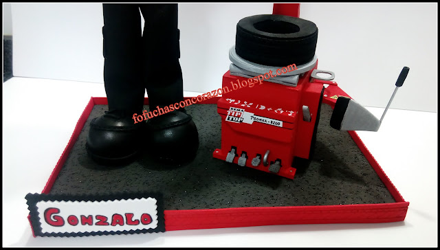 ....es para Gonzalo, el mejor técnico de Galicia con diferencia!, viste su uniforme de trabajo, y le hemos pintado las siglas de Servicio de Asistencia Técnica, tal y como lo lleva él, también le hemos añadido una máquina desmontadora de ruedas....